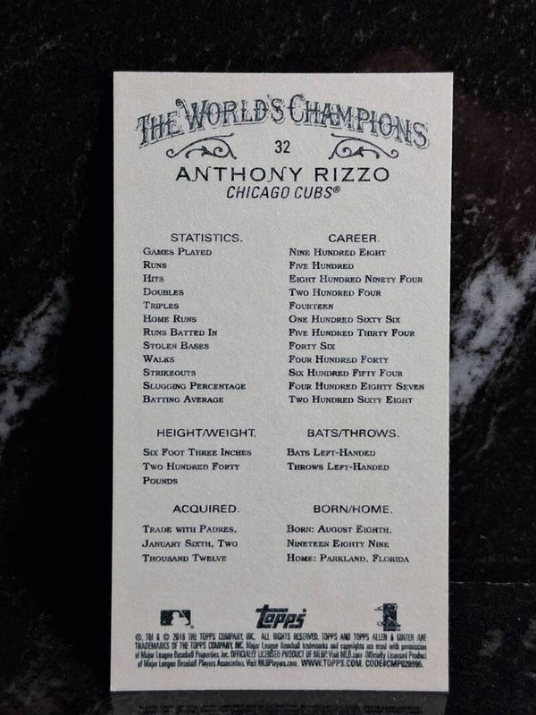 Anthony Rizzo #32 2018 Mini Black Allen & Ginter