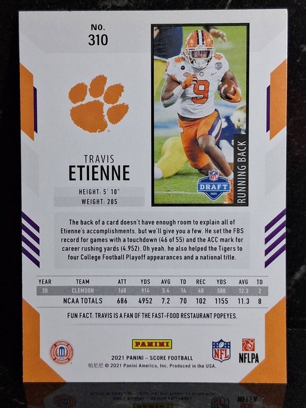 2021 Panini Score NFL Travis Etienne Rookie RC #310 Jacksonville Jaguars Clemson Tigers