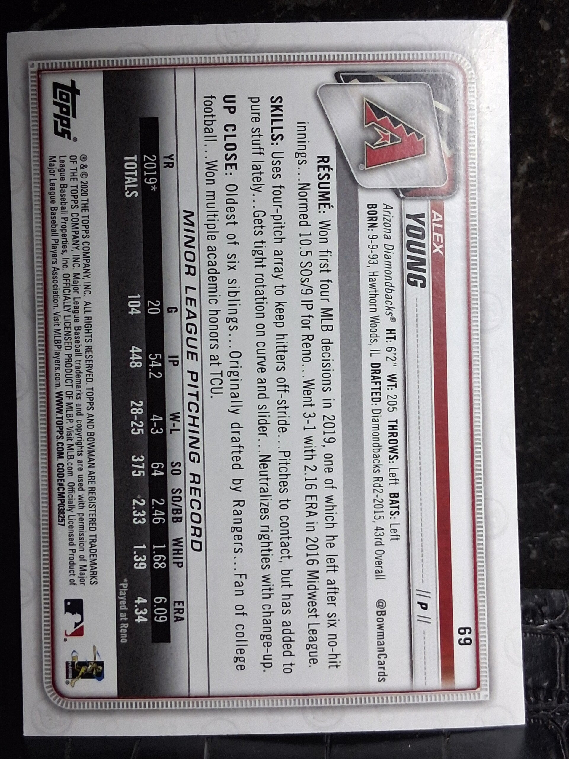 2020 Bowman Alex Young Rookie Arizona Diamondbacks #69
