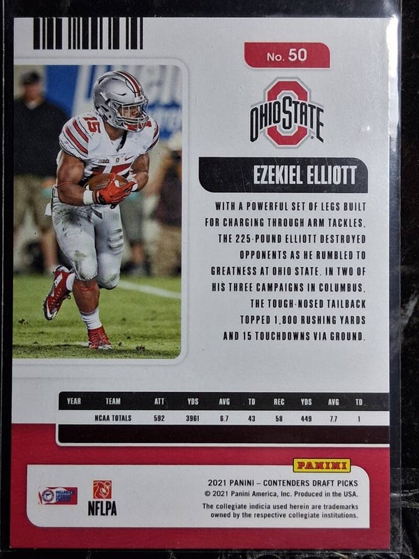 2021 Ezekiel Elliott Panini Contenders Draft Picks Game Ticket Ohio State #50