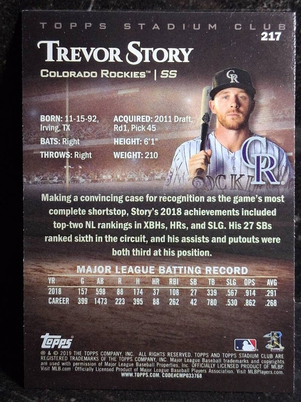 2019 Stadium Club #217 Trevor Story Colorado Rockies Baseball Card