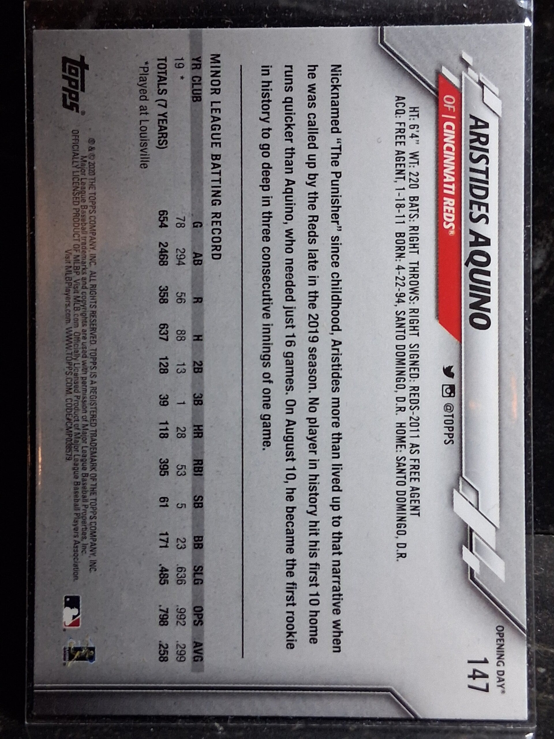 2020 Topps Aristides Aquino RC Cincinnati Reds Rookie #20
