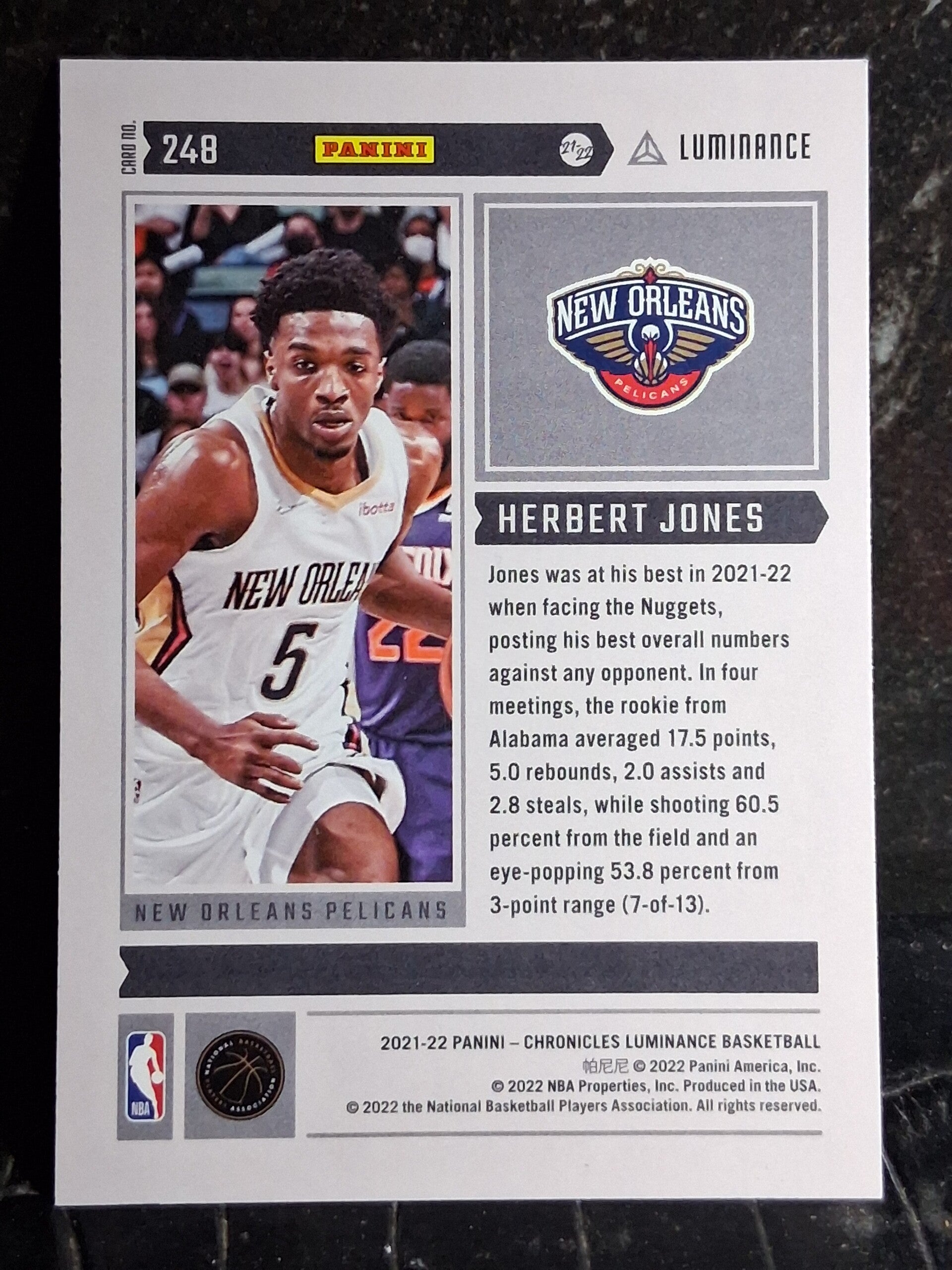 2021-22 #248 Herbert Jones Panini Chronicles Luminance Basketball RC New Orleans Pelicans