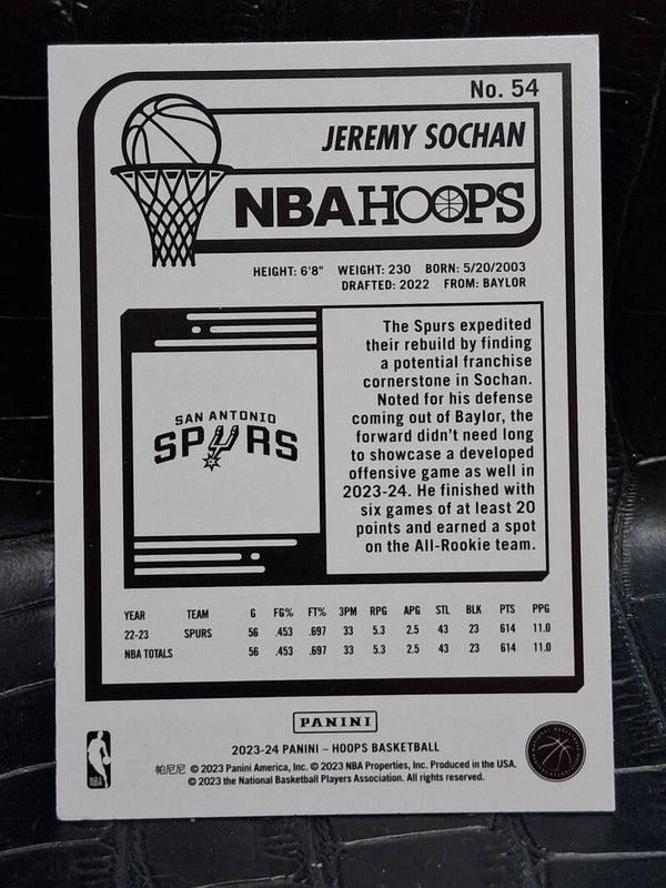 2023-24 Panini NBA Hoops Teal Explosive Jeremy Sochan San Antonio Spurs #54